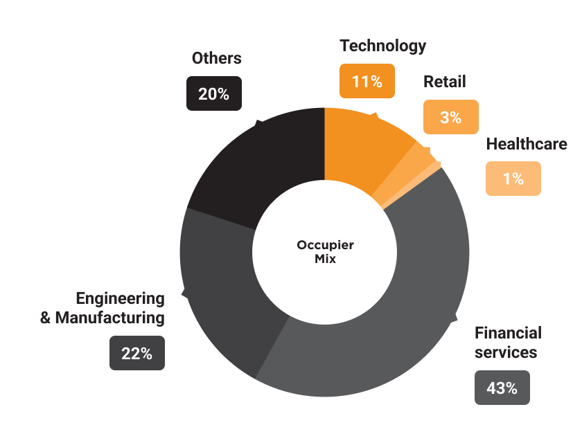 Embassy 247 is a Grade A city-centre office building located at Peripheral Business District East submarket on one of Mumbai’s major arterial roads, midway between two major suburban railway stations with easy access to Eastern and Western Express Highways. Embassy 247 is an emerging location for corporates because of its organized infrastructure and proximity to residential areas. This is a key factor considering the ease of commute for employees.