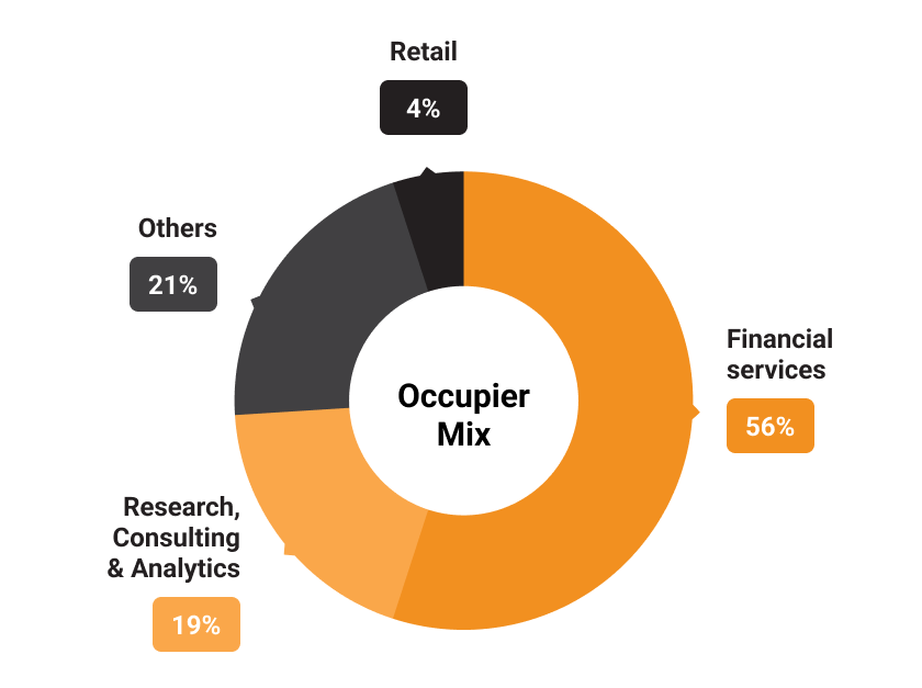 Express Towers is a landmark Grade A office building with institutional ownership in Nariman Point, Mumbai. It's located close to some of India's most exclusive residential neighborhoods. Express Towers was built in 1970 and offers a panoramic view of the Marine Drive, the Arabian Sea, the coastal road, and South Mumbai. The LEED Platinum certified property has excellent transport links via the public transportation network and Mumbai Metro.